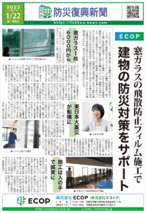 また、窓ガラスの飛散防止対策に関する取り組みは、防災分野でも評価され、復興防災新聞にも掲載されています。